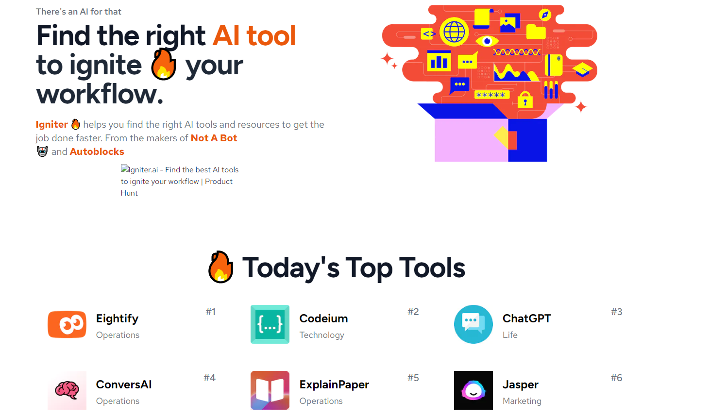 https://www.igniter.ai/ 国外网站,可以看到最新的AI热度排行,了解AI最新趋势