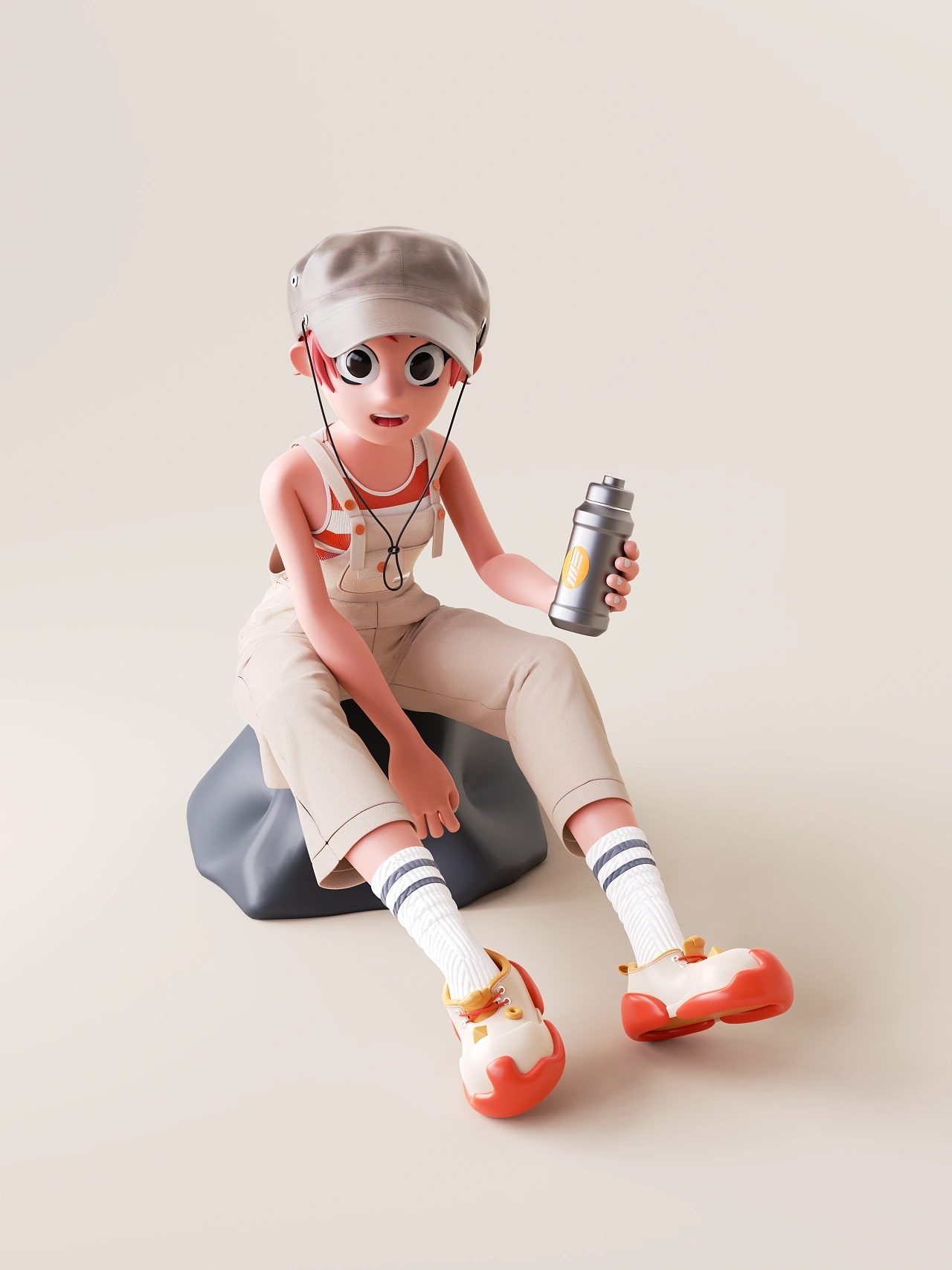 年初开始自己摸索一段时间C4D后又跟着NiaoNiao又学习了两月,后半部分高阶内容没有全部跟下来就开始犯懒了;虚度了一个季度之后支棱起来设计了这套女友IP,时间大概花了20天,反反复复渲染了很多版本和效果最终敲定了这套有些许曝光但自我感觉还行的效果。