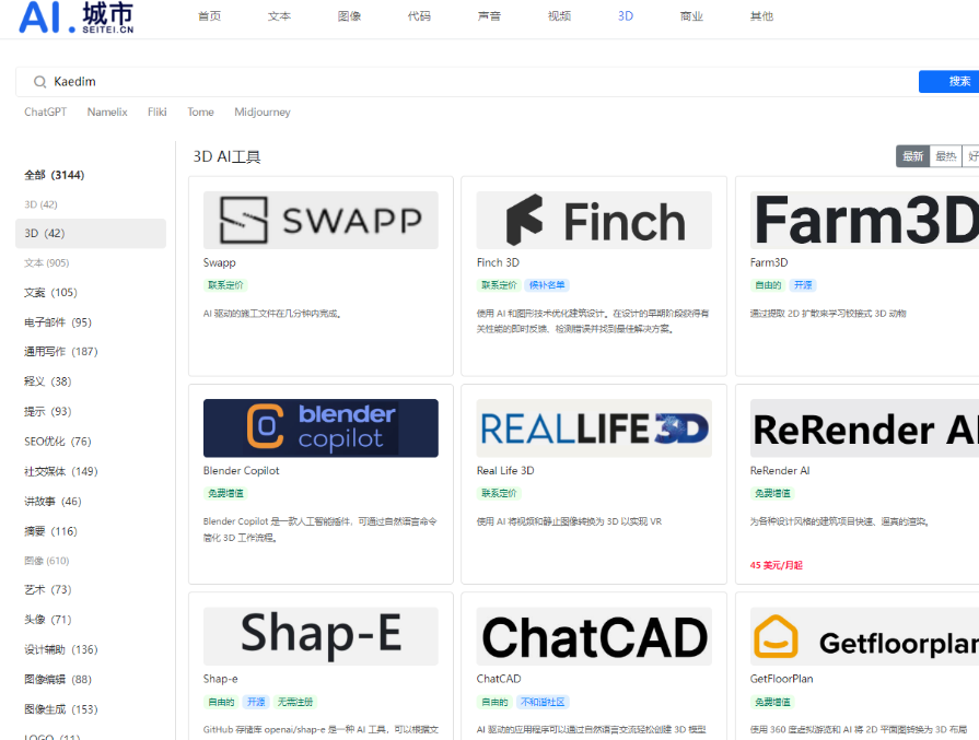 Kaedim使用先进的 AI 技术从图像生成可用于生产的 3D 模型。无需先前的 3D 建模经验,所有用户均可使用,非常适合希望在短时间内生成复杂 3D 模型的设计师。