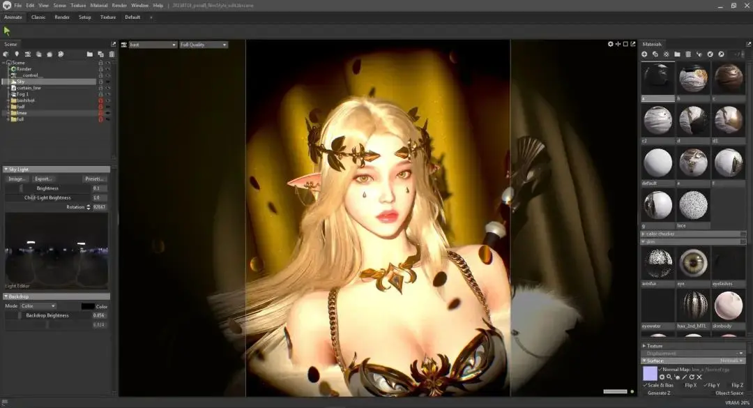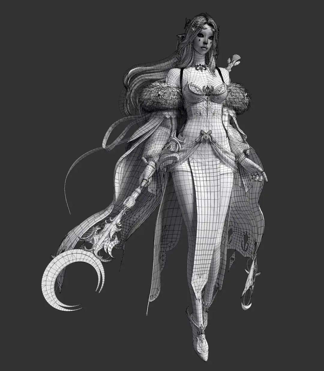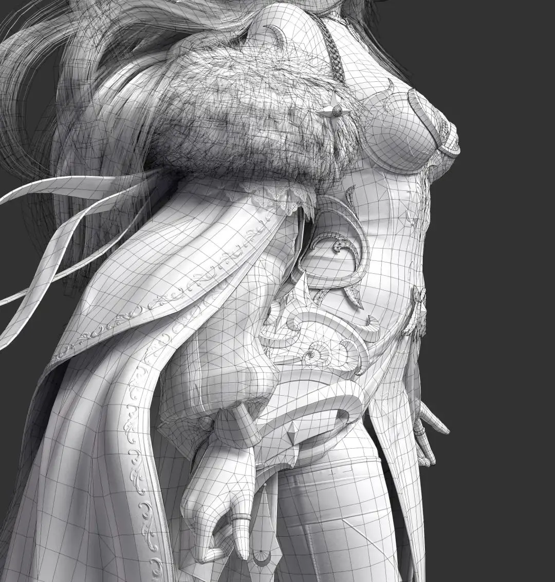 在原画师概念原画设计的基础上利用Zbrush制作基础裸模,完成角色形体模型、人体的精细雕刻、面部雕刻等等工作。最后完成人体裸模上色以及实体风格头发雕刻。完成了模型制作,就意味着次世代的人物建模就已经初具雏形了。