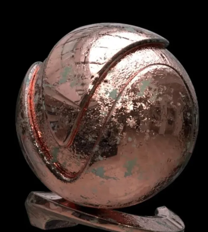 生锈的铜。使用 Substance Designer 贴图并 以V-Ray 进行渲染着色器