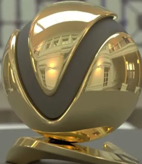 Diffuse 243,201,104 (gold);Reflection 255,255,255;Glossiness 1;IOR 1.35