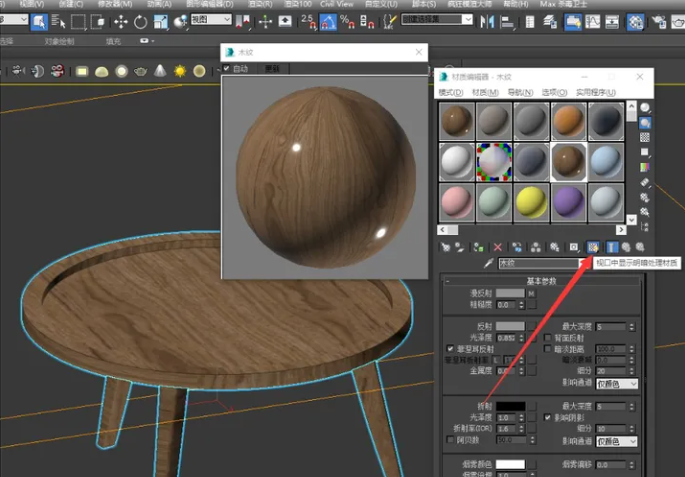 遇到这种情况我们要打开材质编辑器,在这里点击在视口中显示明暗处理材质。