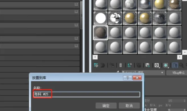 8、接着跳出库列表,找到刚才新建的材质库,然后点击弹出放置倒库窗口,给材质命名,最后点击确定即可。