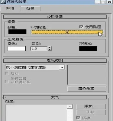 按C切换到摄影机视图,再按快捷键8打开环境和效果控制面板。在这里有背景这个选项,下面有颜色,环境贴图以及使用贴图。单击环境贴图下面的通道。