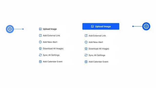 在设计要在产品内部使用的菜单时,请确保在屏幕上突出显示最常用的操作(如上传图像、添加文件等)。