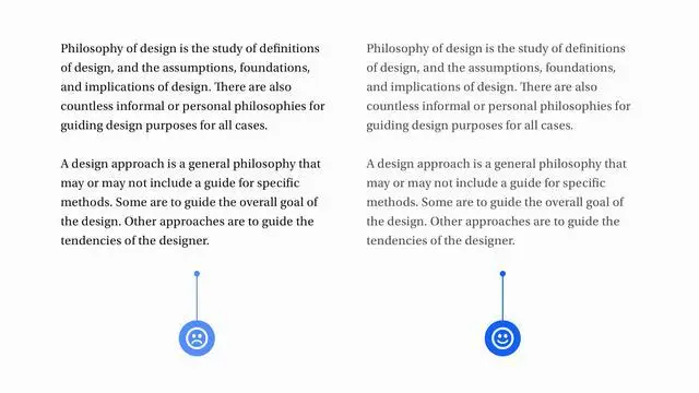 当涉及长篇内容时,大面积的深色粗体字会给人一种沉重感,而且很跳跃。