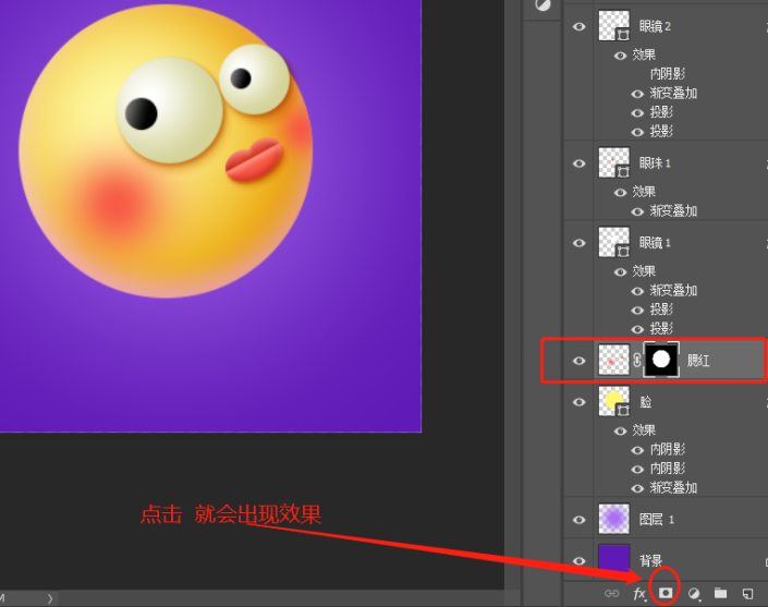 3.13按住ctrl点击脸部的缩略图。得到选区,选中腮红单击右下角的蒙版http://www.16xx8.com/tags/38847/,遮盖多出来的部分,如图: