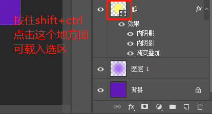 3.2为「脸」图层添加图层样式,内阴影和渐变叠加,参数设置如下: