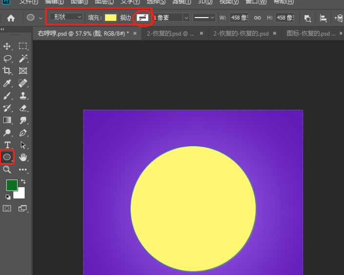 首先绘制表情的脸部,用椭圆工具创建圆形大小随意,填充颜色随意,关掉描边,将图层命名为「脸」,参数设置如下: