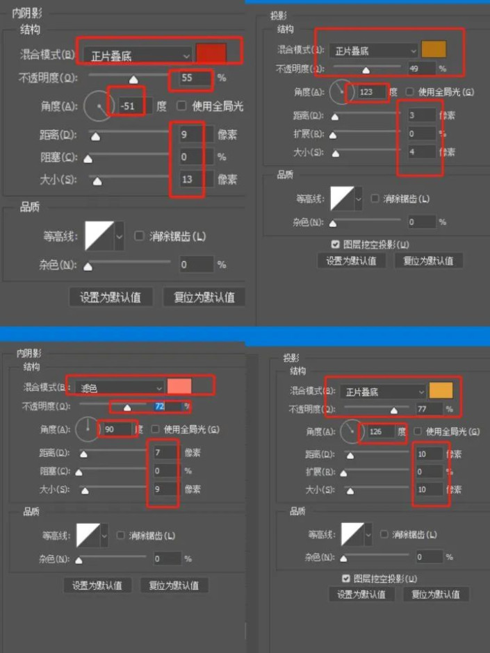 3.10 给「上嘴唇」添加图层样式,内阴影,具体参数如下: