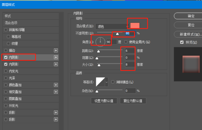 3.11 给「下嘴唇」添加图层样式,内阴影,具体参数如下: