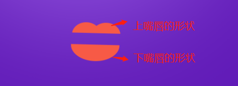 3.9开始制作嘴巴部分,先用钢笔工具(快捷键:P)画出上下嘴唇,图层分别命名为「上嘴唇」和「下嘴唇」,然后摆放为如下图的位置,钢笔模式和填充颜色具体参数如下: