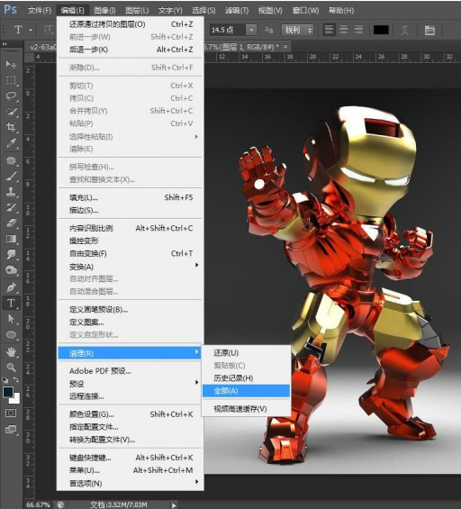 第一种方法,清除软件内存,点击左上方编辑,选择清理-全部