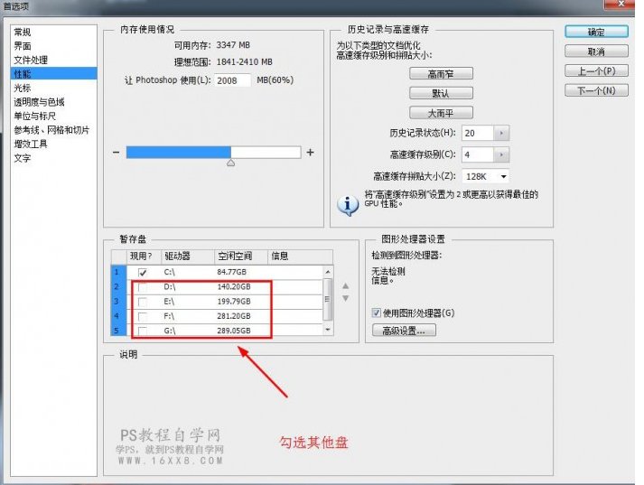 第二种方法,调整储存的盘,点击编辑-首选项-常规