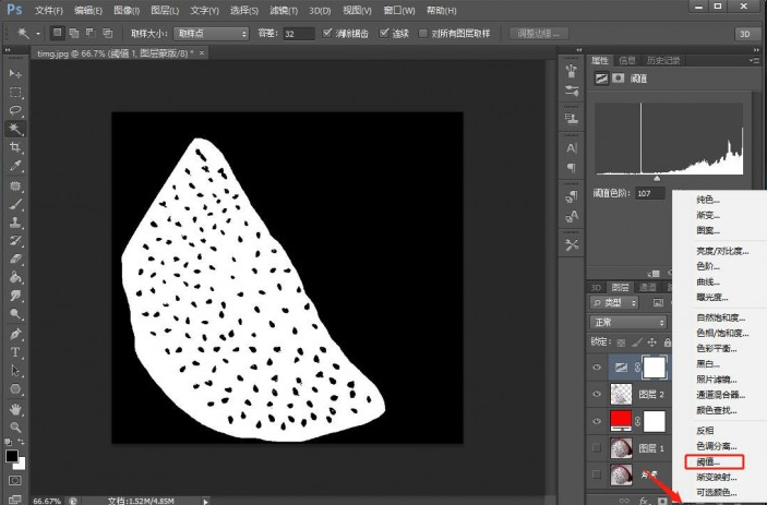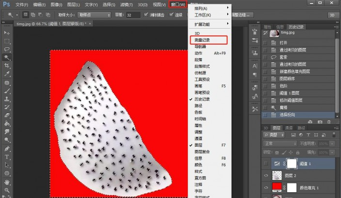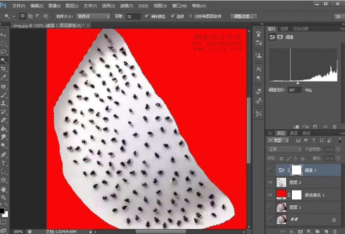 七、隐藏阙值看一下,现在我们可以看到火龙果籽已经全部被选中了