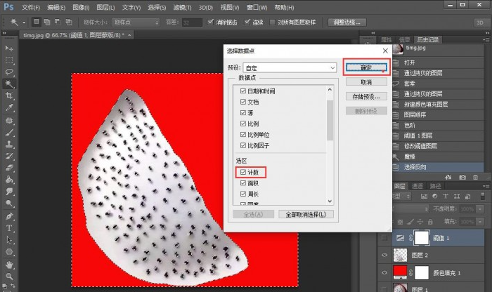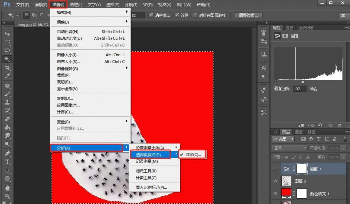 八、对选区在进行一个Ctrl+shift+i反选,执行图像—分析—选择数据点—自定
