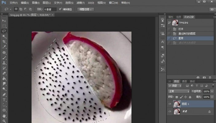 二、为了好区分,我这里用套索工具单独圈出了要计算的火龙果籽