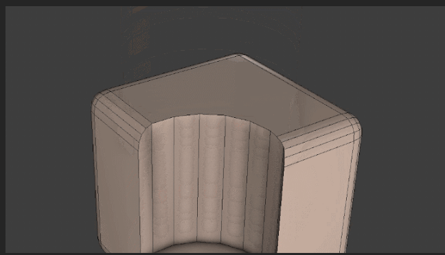 执行与原始多边形曲面共面的正智能拉伸(如扩展圆柱体的顶部多边形)时,3ds Max 会尝试在用智能拉伸拉伸的新面上使用相邻面的现有法线,从而创建平滑结果。