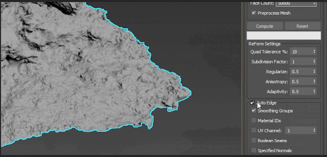 使用“智能拉伸”从向内或向外拉伸创建新几何时,如果彼此之间的公差在 30 度以内,则与先前存在的几何图形不平面的面将自动平滑。此结果类似于应用角度阈值为 30 度的平滑修改器。