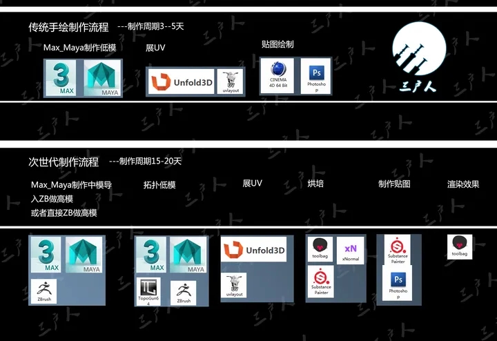 建模的流程是这样的 1、用3DsMax 或Maya制作低模,为用Z Brush 雕刻高模所做的预备工作。 2、用Z Brush 雕刻低模。低模导入到Z Brush 中,先做大型再做细节。 3、将高模拓扑为低模。 4、展开低模的UV,为烘焙法线贴图做准备。 5、烘焙法线贴图。 6、贴图绘制。 7,渲染